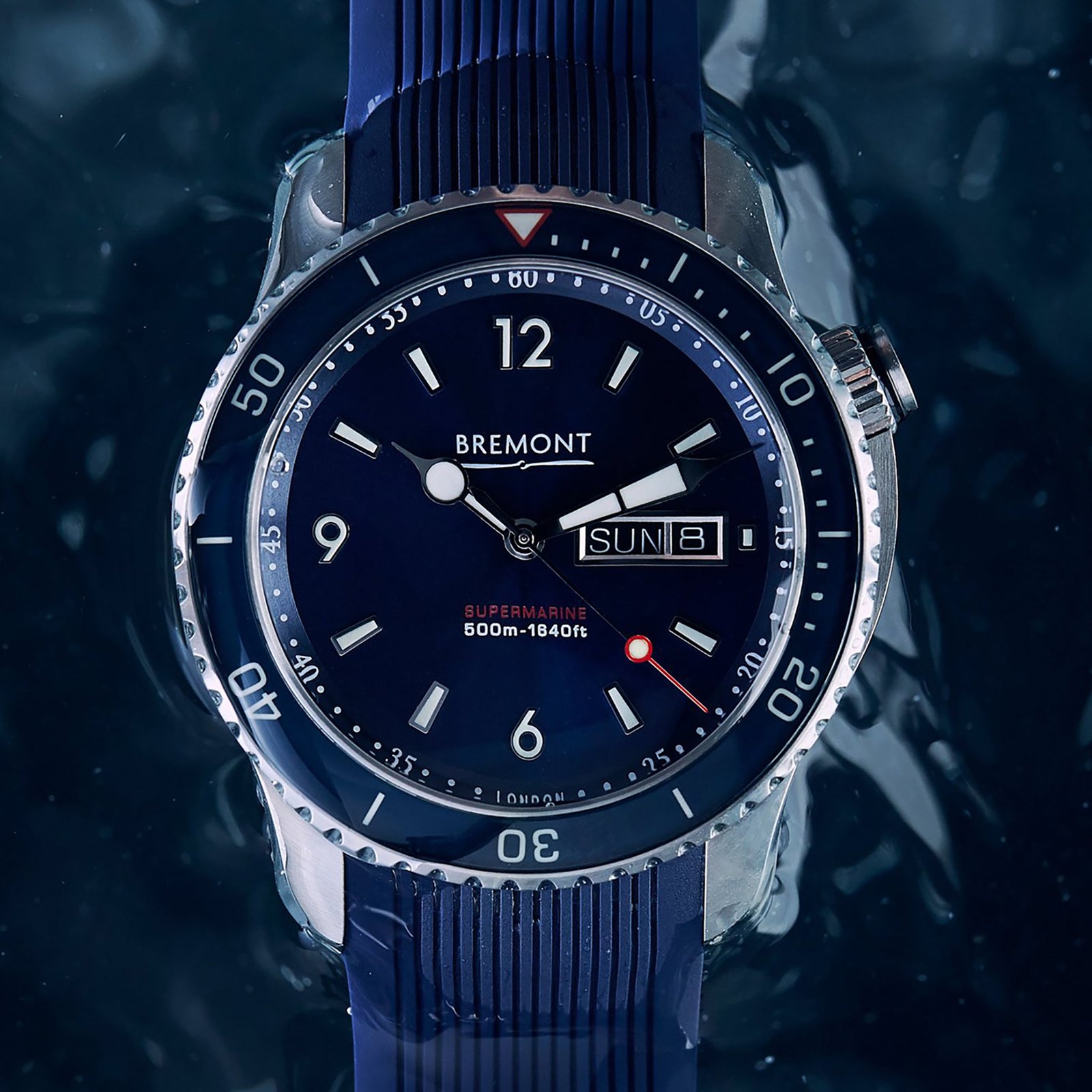 The first diving watch Bremont ever produced was the 43mm Supermarine 500 which was introduced back in 2009. Co-Founders Nick and Giles English had wanted to build a robust but beautifully engineered diving watch that was very practical in design, but also tied into the brand’s strong aviation heritage. The watch had to also hold its own against any other mechanical professional diving watch in terms of engineering, design and price point. The range was named as a tribute to the brothers’ love of the iconic British aircraft manufacturer responsible for the Supermarine S6B Schneider Trophy Seaplane and of course the incredible Supermarine Spitfire.